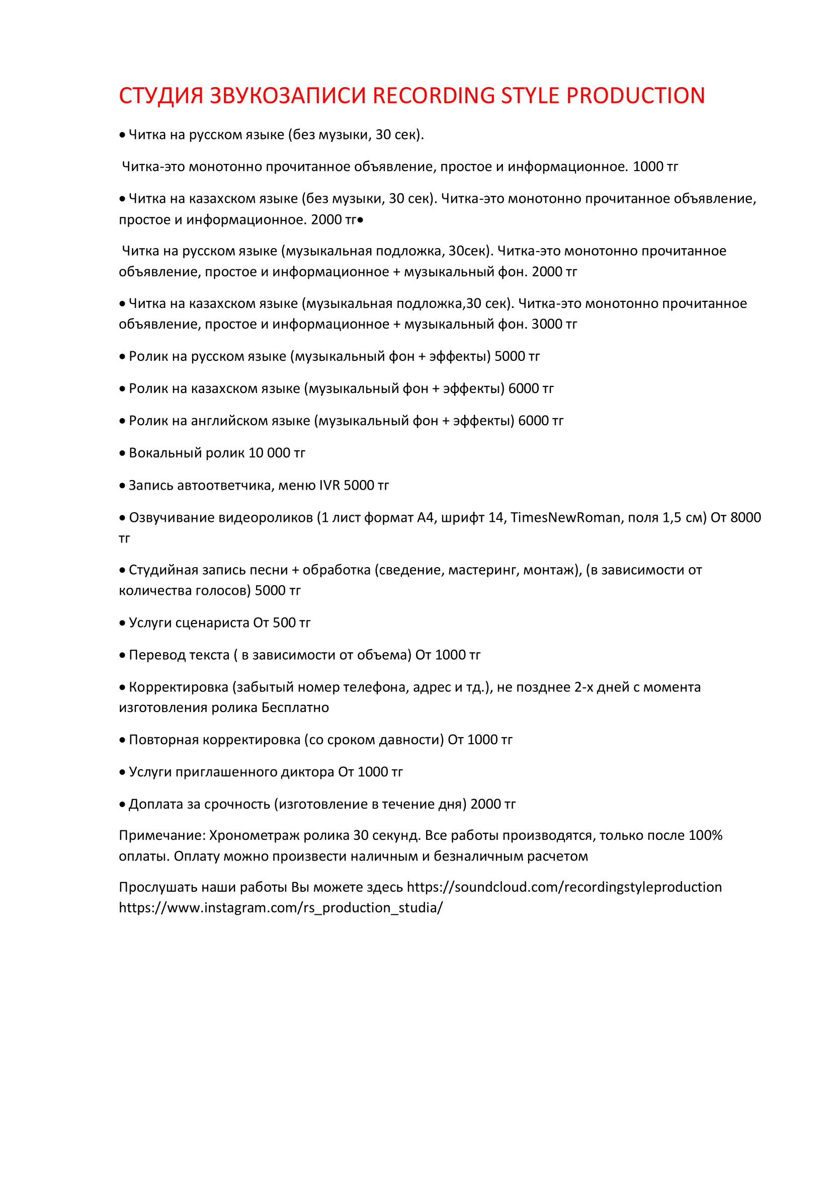 Если Вам необходимо изготовить аудио ролик, то стоимость - 10 000 тг.(изготовление от 2 часа)