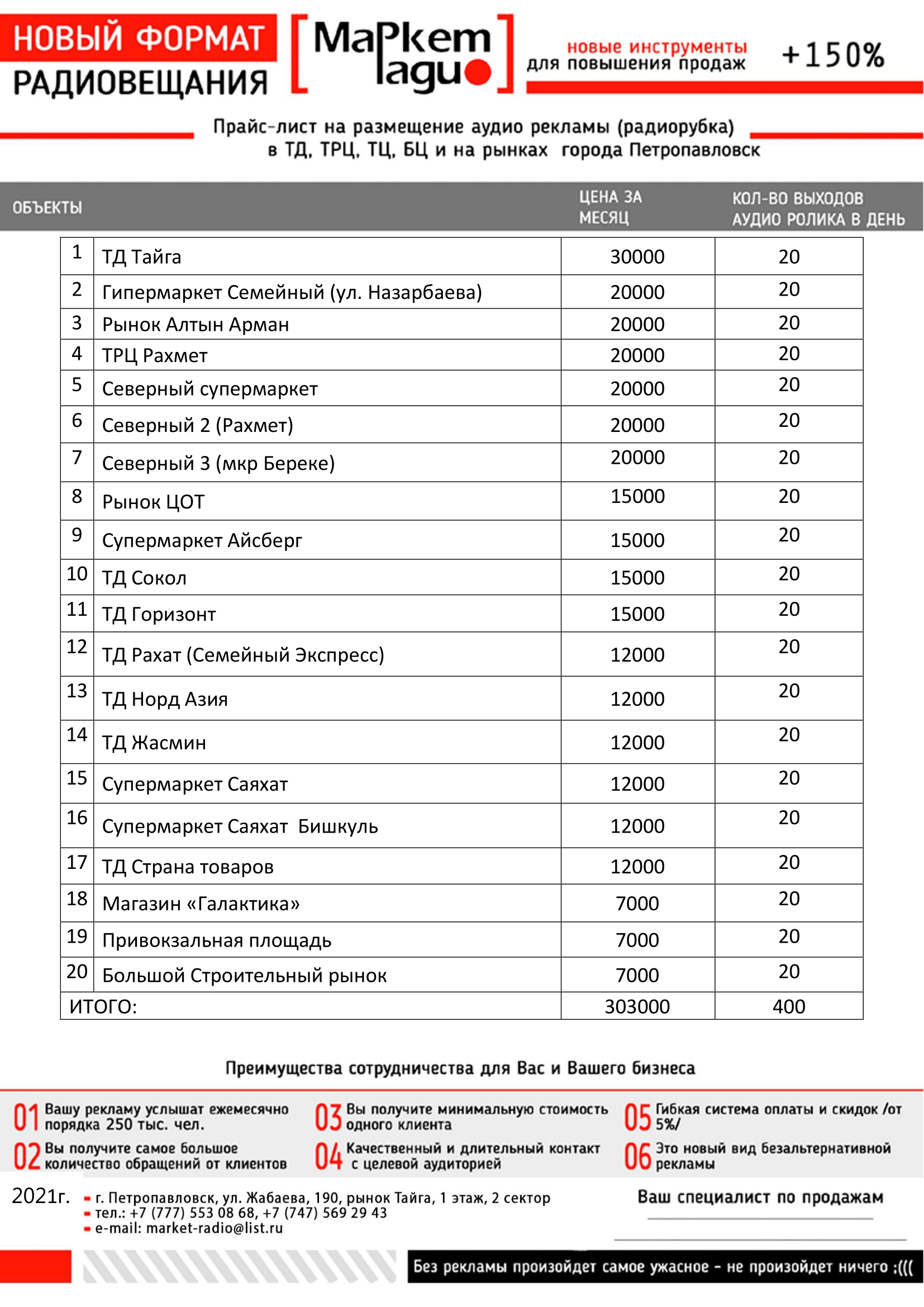 Вашу рекламу услышат ежемесячно порядка 250 тыс. человек